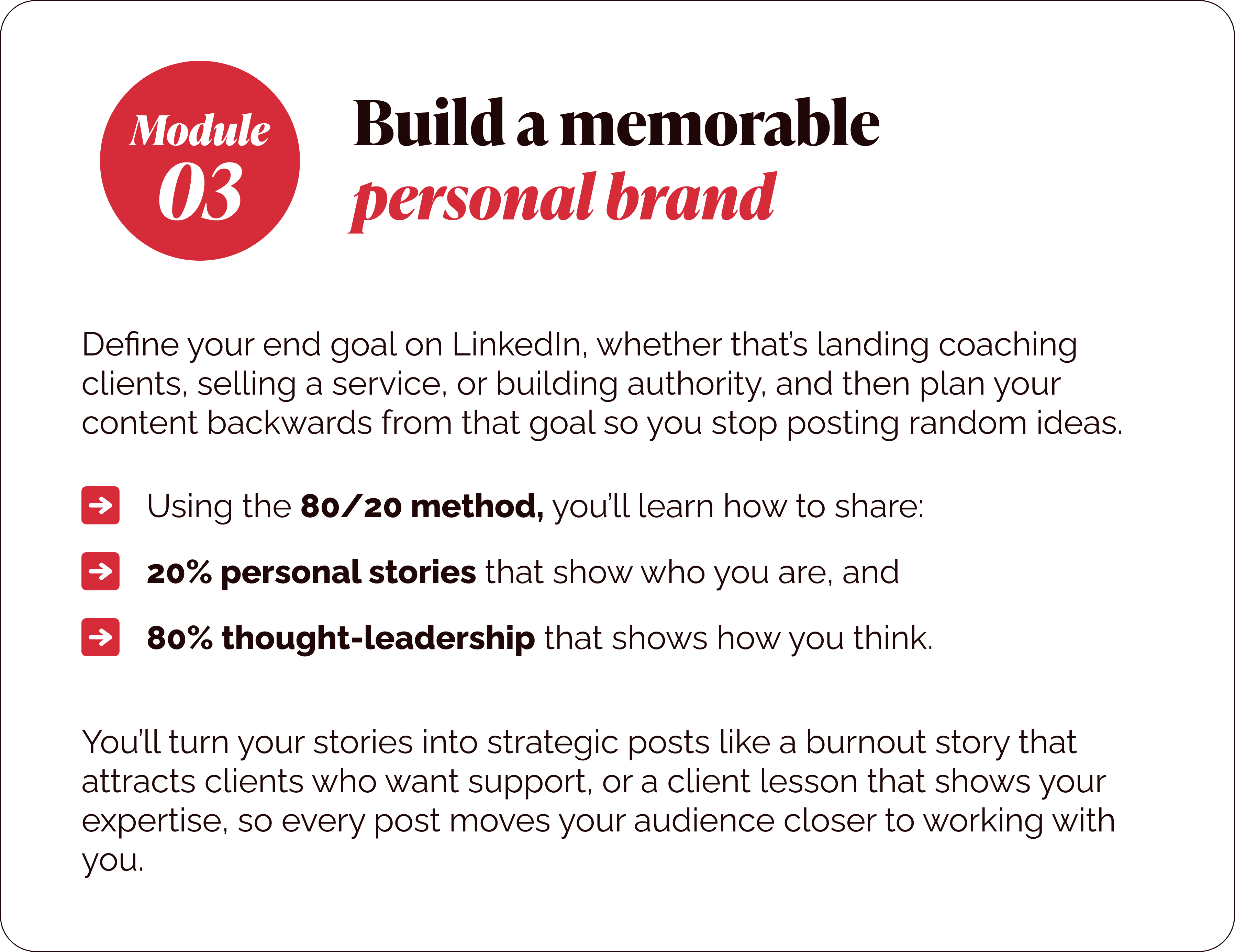 Access to 15 hours of content on how to use LinkedIn and grow a personal brand