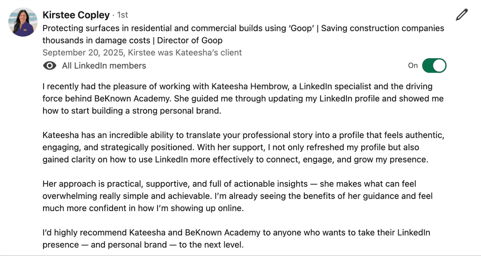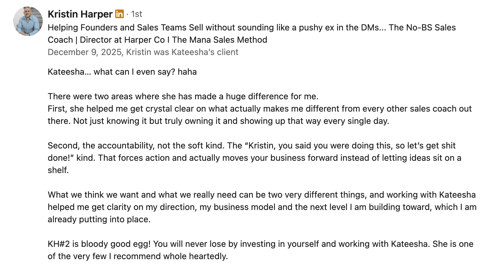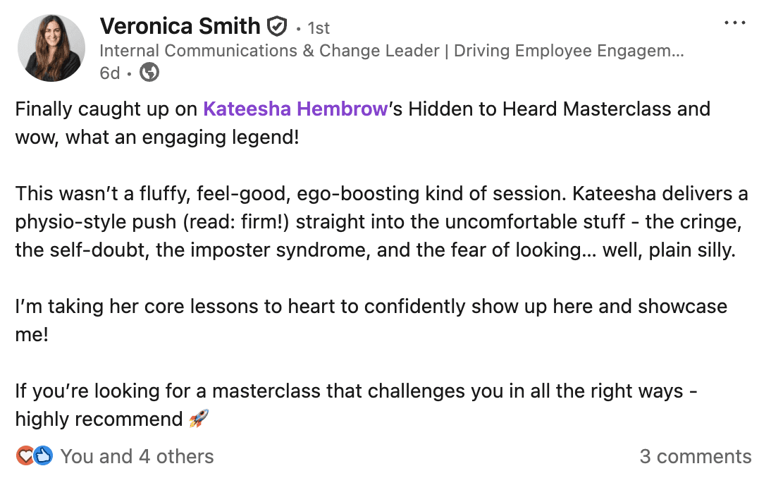 “Kateesha doesn’t just teach LinkedIn, she helps you understand how to connect, tell stories, build relationships, which is where real magic happens…”