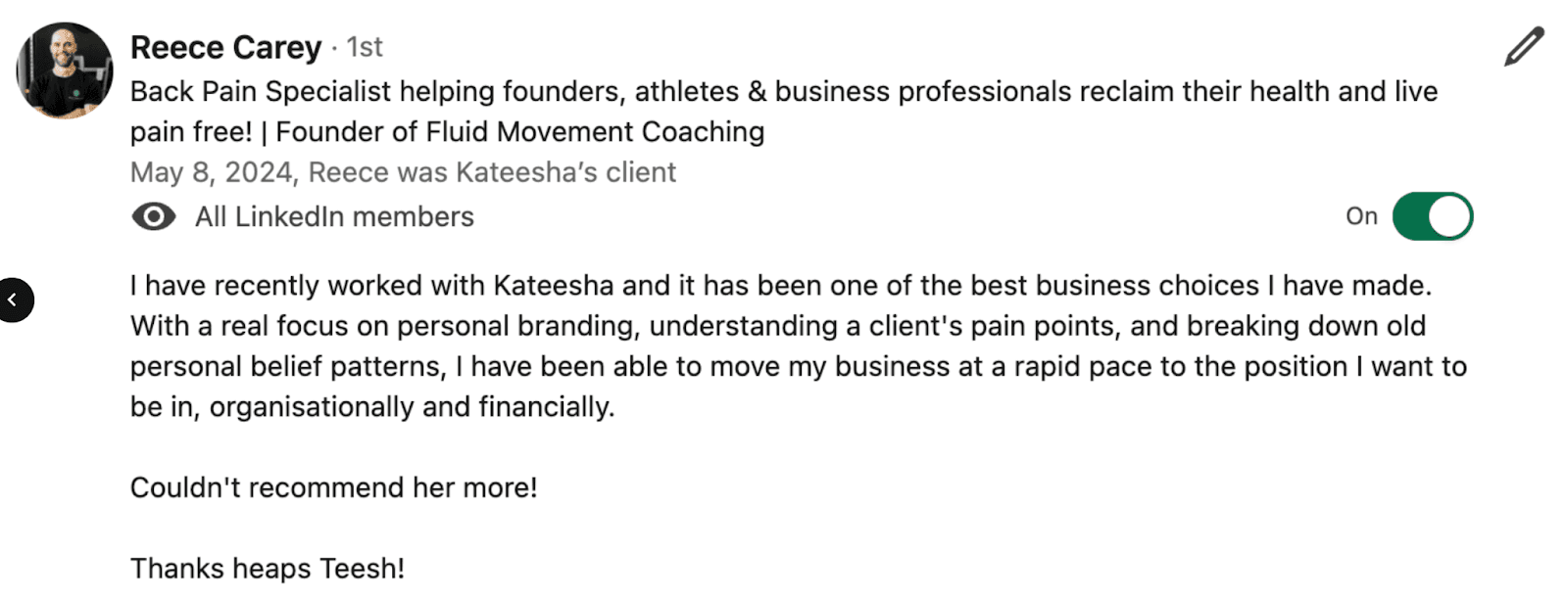 “Kateesha broke down my old belief patterns, which is why I have been able to move my business to the position I want to be in…”