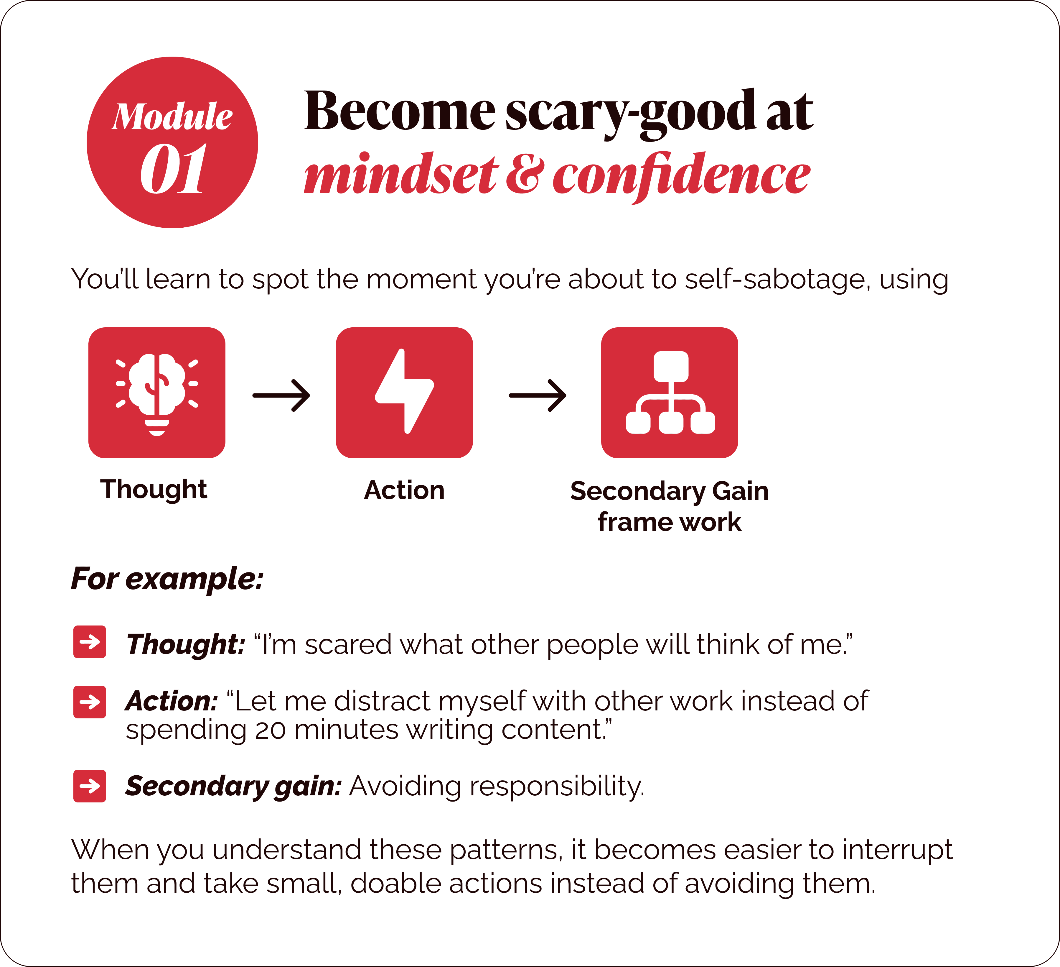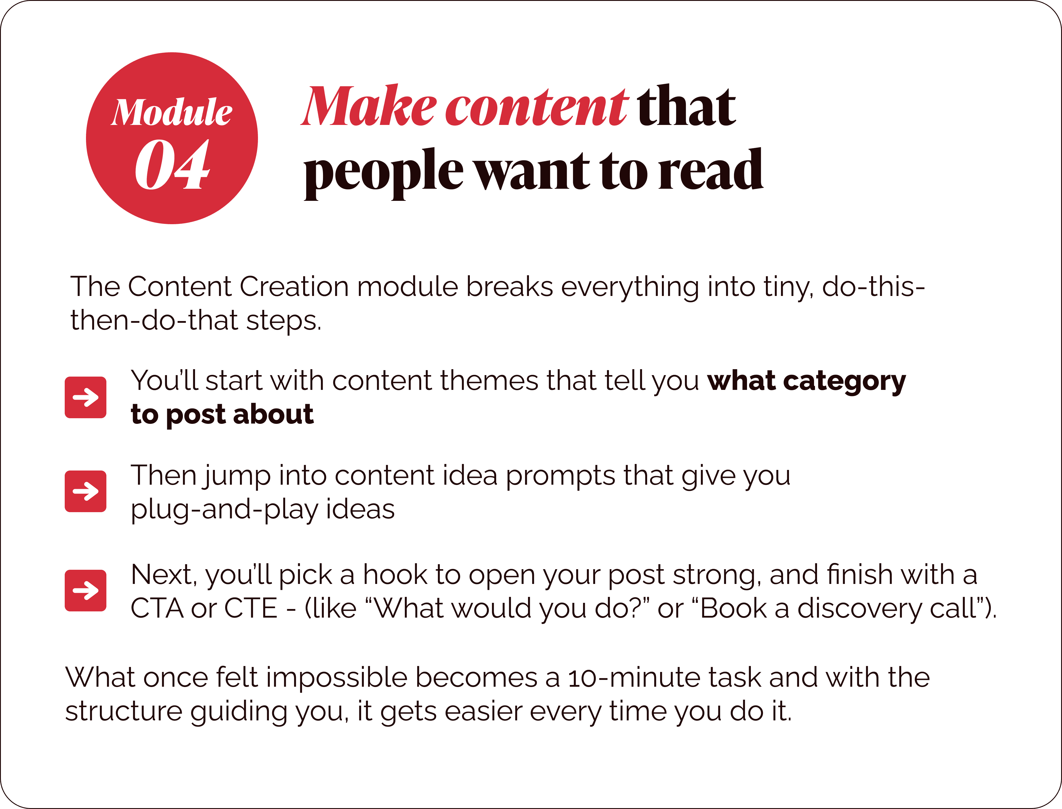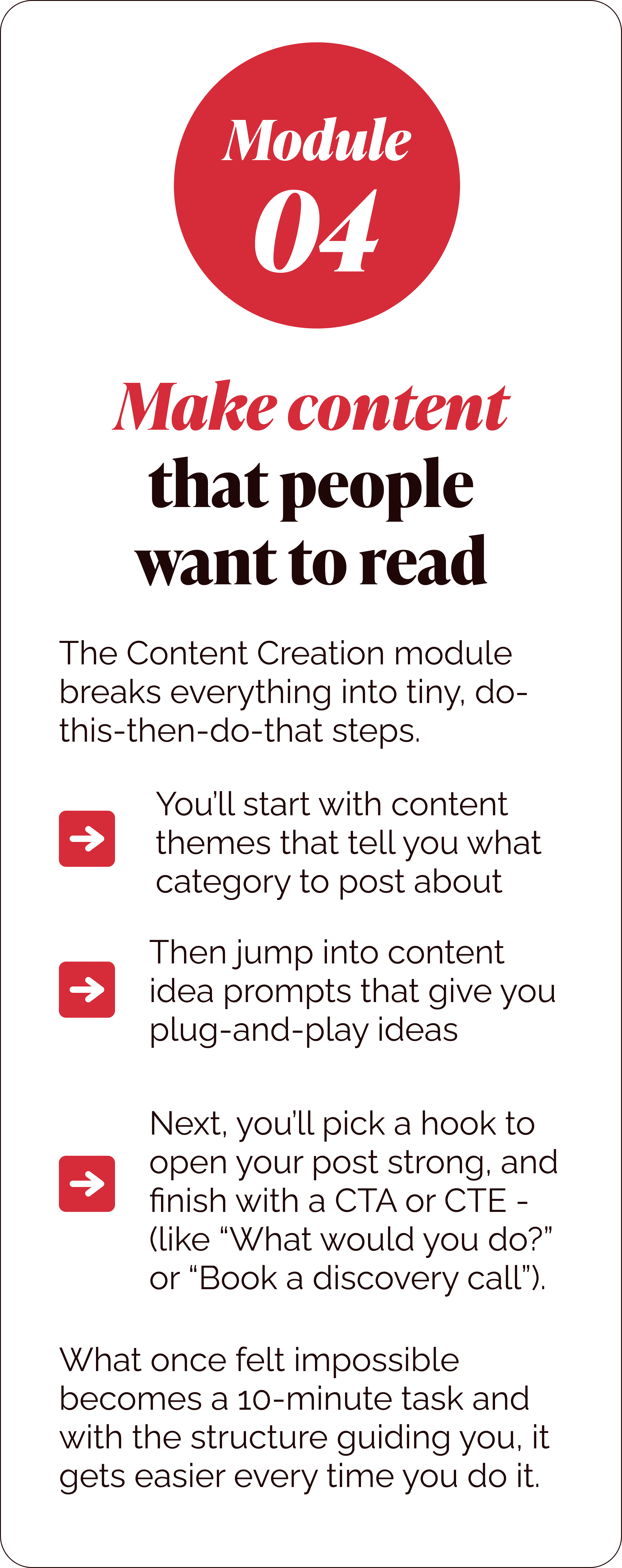 Once you have that s tructure clear routines, tools, prompts, and systems so showing up feels like “oh, I can do this!”