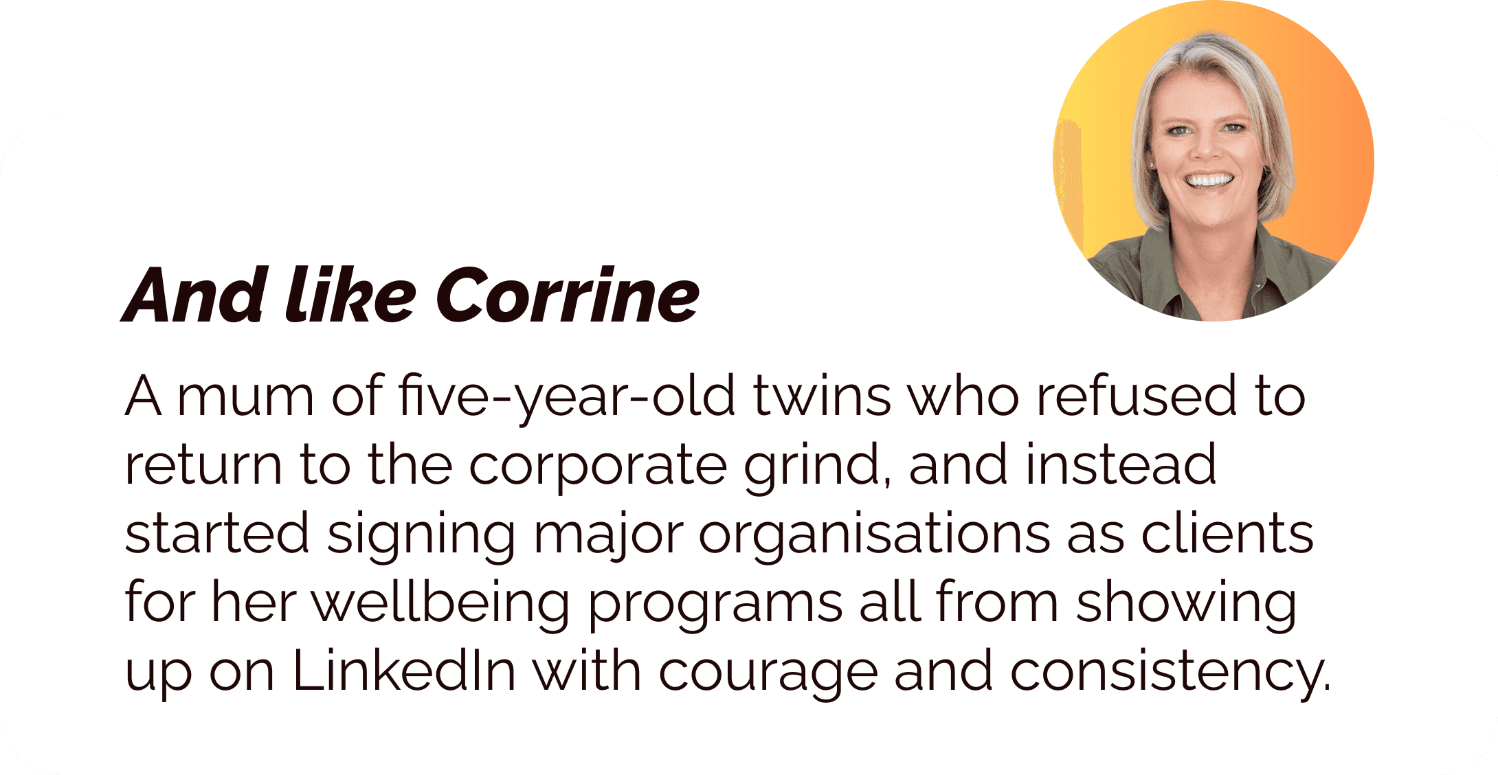 Think back to your corporate days… On days when everything else felt ridiculous, having people around you who “got it” made the day 10× easier to get through.