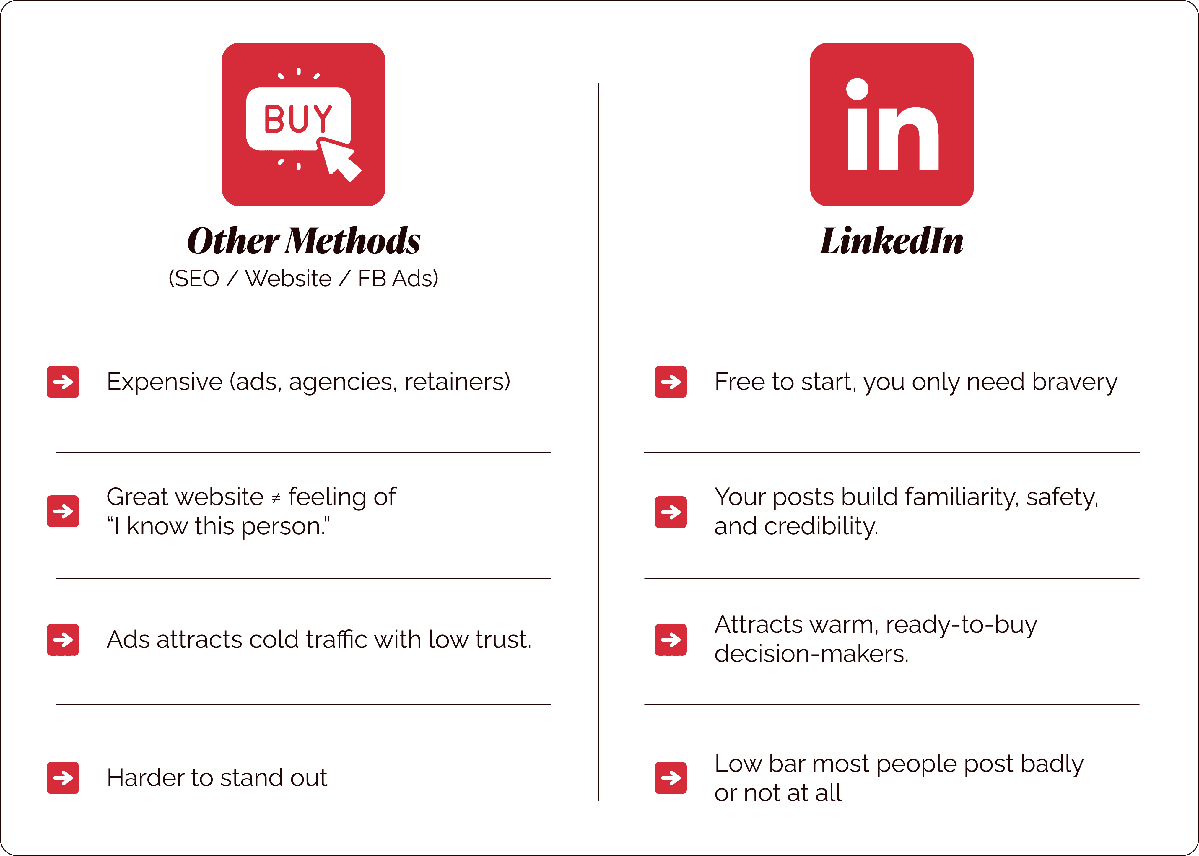 you also know you need to be there especially when you need leads to keep your business (and family) afloat. Because the truth is, you can’t afford to slip back into corporate burnout. So naturally, you look at LinkedIn.