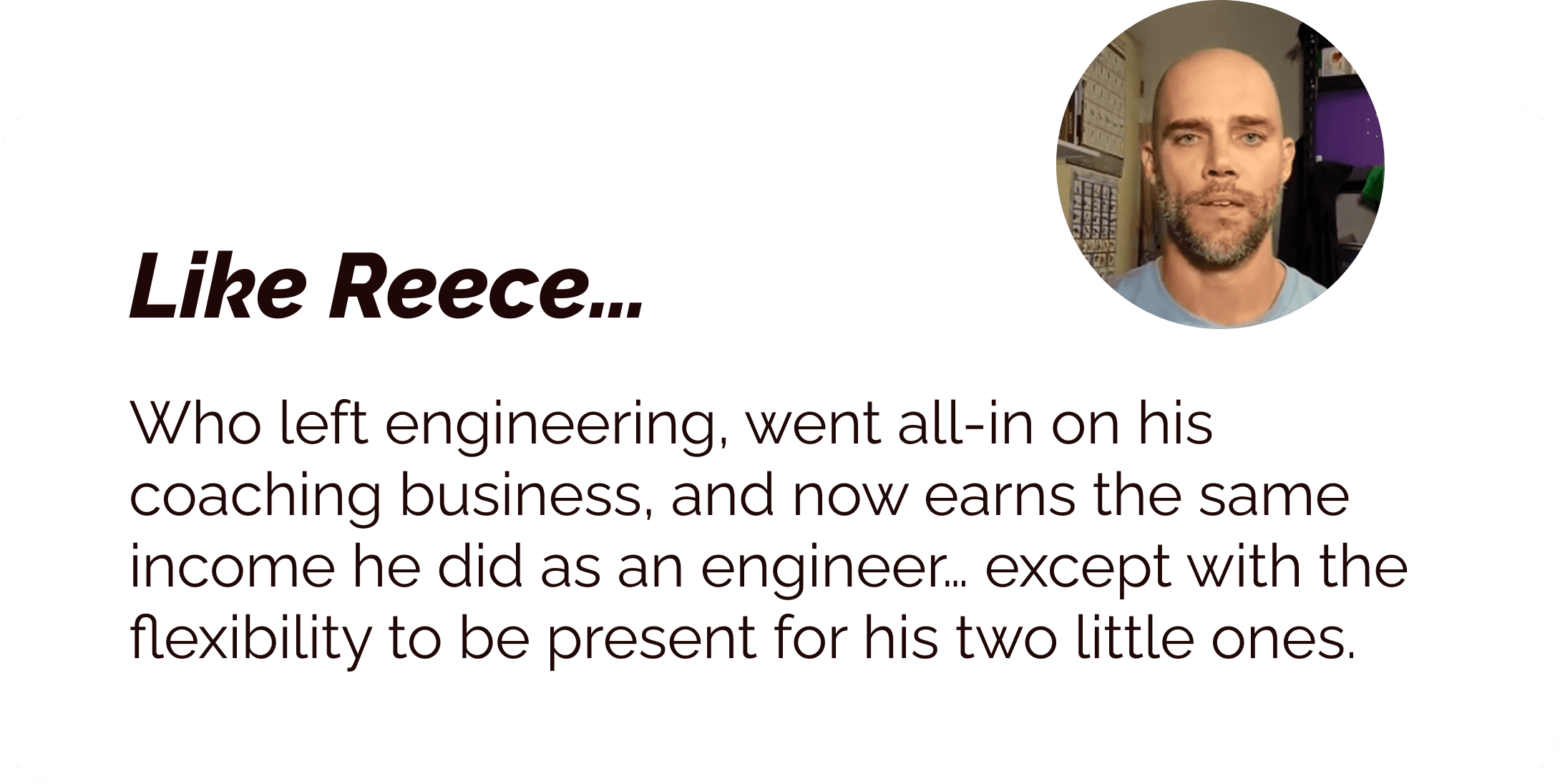 A space for ex-corporate professionals building a business that replaces (and then exceeds) their salary… and flexible enough to let them enjoy a beautiful Tuesday afternoon with their kids.