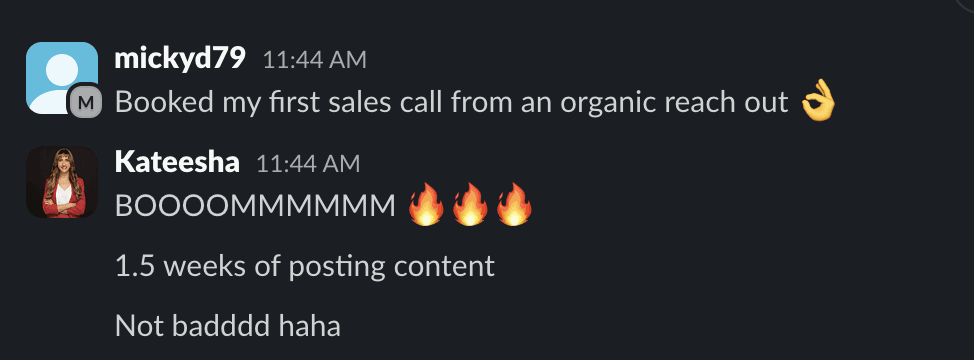 "After just 1.5 weeks of posting content, I booked my first sales call from organic outreach."