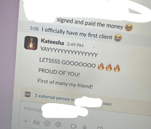 "I officially signed and onboarded my first paying client. The momentum from Be Known Academy is real."