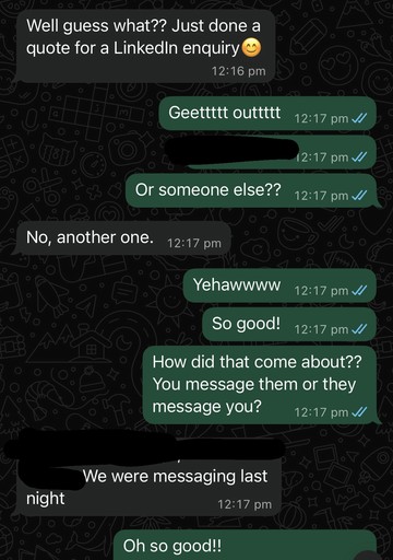 "Thanks to the LinkedIn strategies, I’ve now quoted multiple inbound leads who reached out directly; conversations are turning into real business."